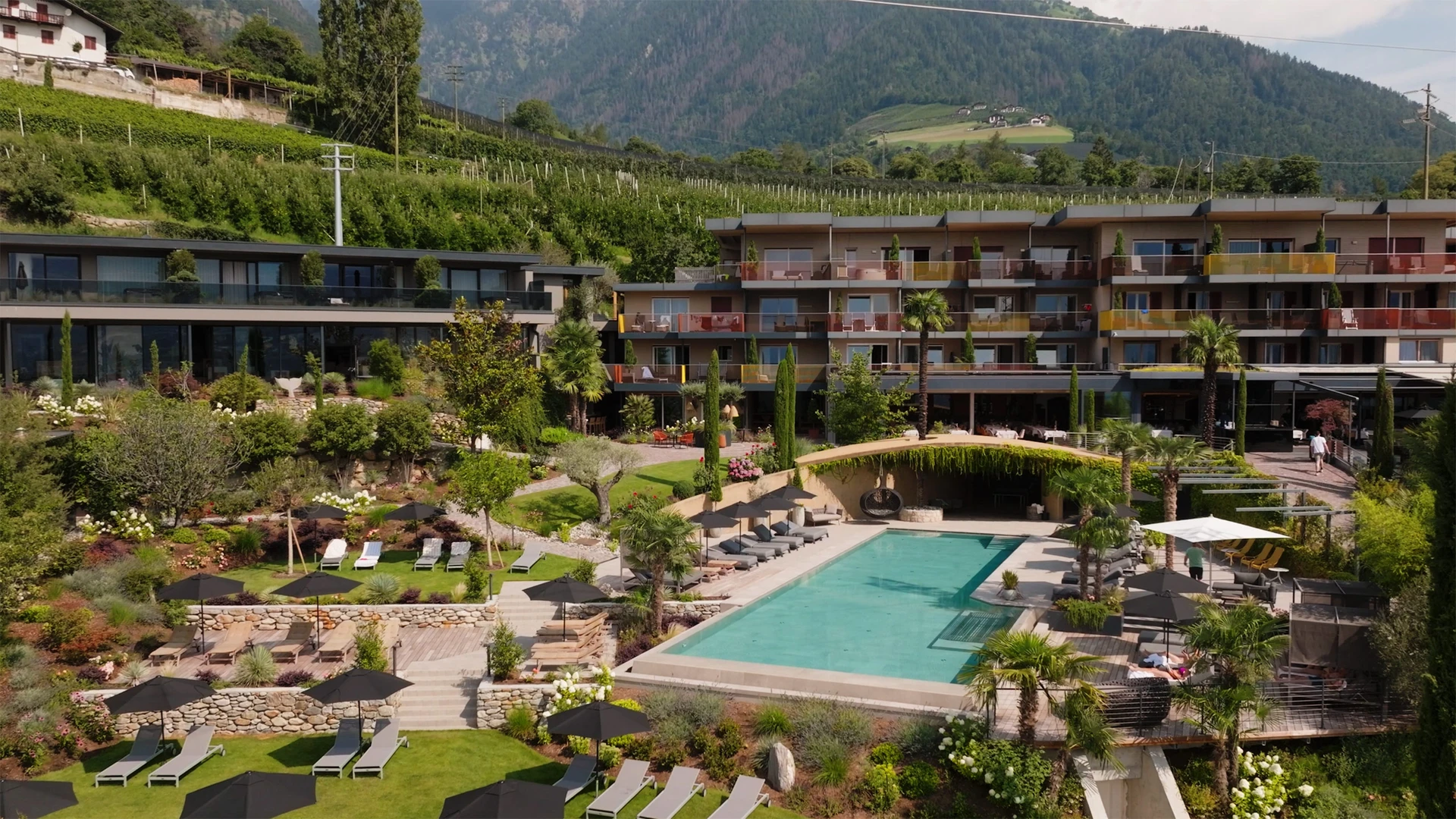 Past the sauna cube, accompanied by the gentle trickling of the pond, your walk leads you under the vines. Across the entire estate, you’ll find shady pavilion retreats, cosy lounge chairs, and floating loungers made for dreaming. Which book have you been meaning to read for ages? Lose yourself in its pages, and whenever you lift your gaze, you’ll be met with a breathtaking panorama of the South Tyrolean mountains.